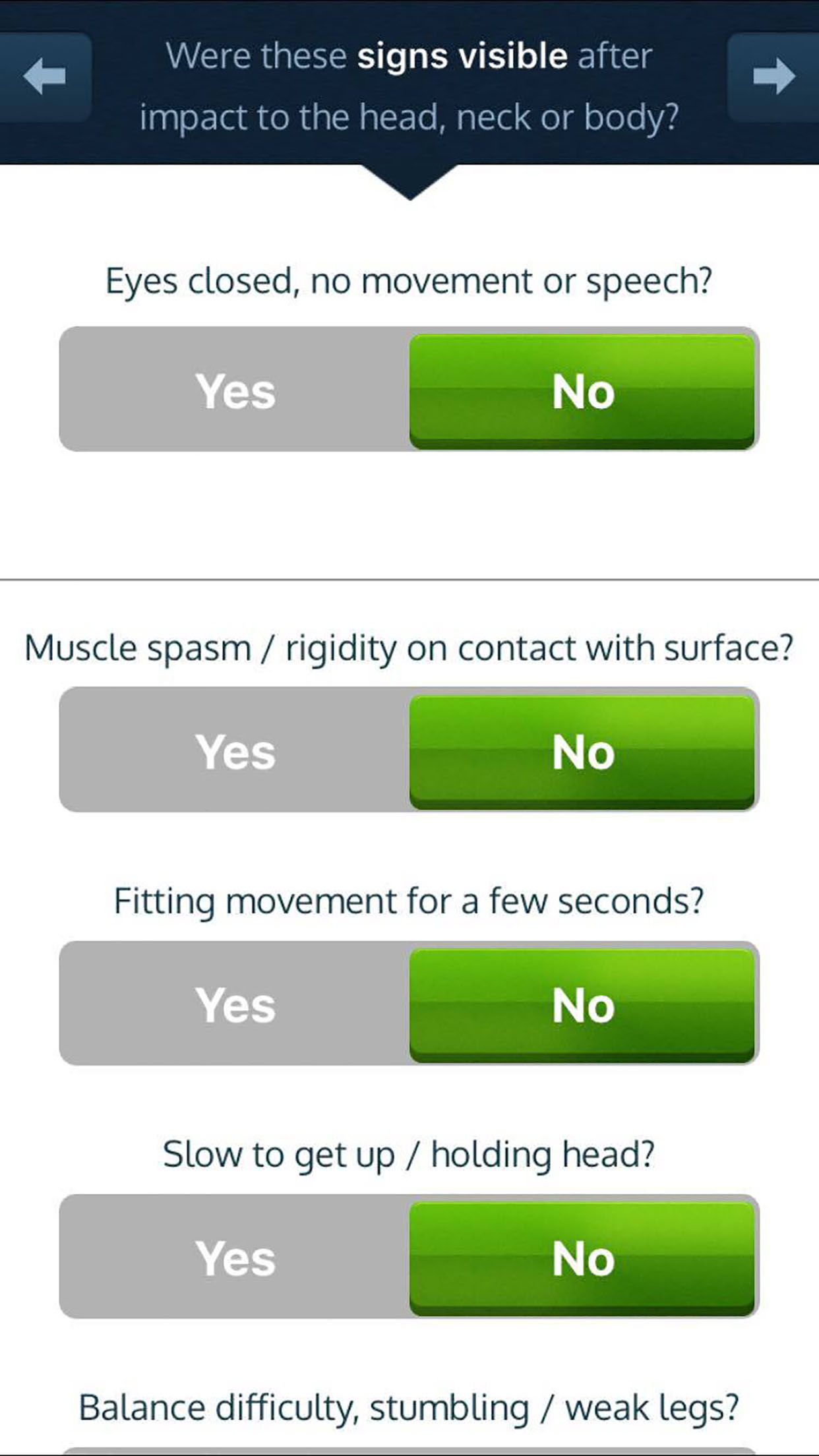 Use the FirstResponder™ Concussion Recognition App at a sports event and get a head injury recommendation for a player or athlete in under 90 seconds. Find the closest medical doctor or hospital emergency department (ED) located on a Google Map display to save you time and give you peace of mind. Fill in the player or athletes’ personal details at the end of the assessment and email a summary PDF report to the school, club, doctor and parents. FirstResponder™ is readily available to coaches, parents, trainers and physio’s, making it easy to recognise the signs & symptoms of head injury. Included in FirstResponder™ are the immediate and delayed picture memory recalls that are based on the scientifically proven Westmead Scale (with permission Shores & Lammel 2007).